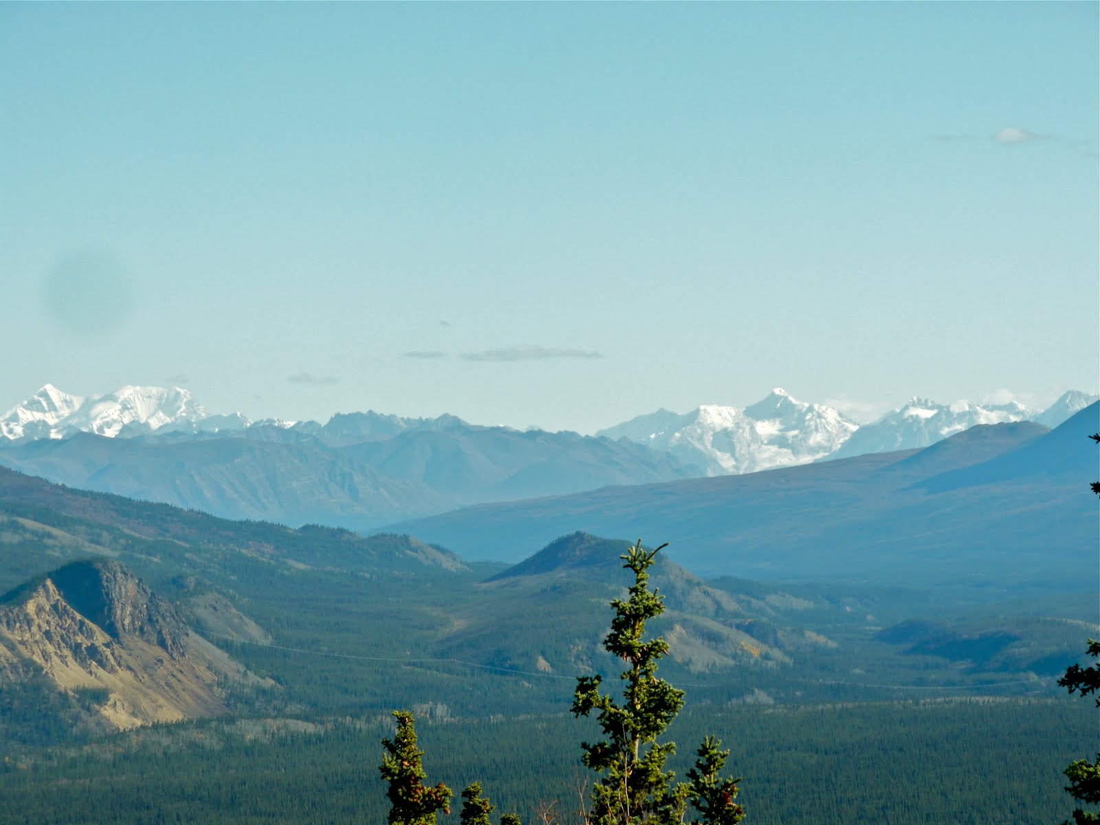 [High peaks in the distant Wrangell Mountains—Deborah and Hayes—show themselves from this high point along the Triple Lakes Trail]