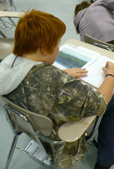 [This boy works from a photo prompt of a surfer about to ride a shark-infested wave off the coast of California. He’s decided to write from the perspective of the shark.]