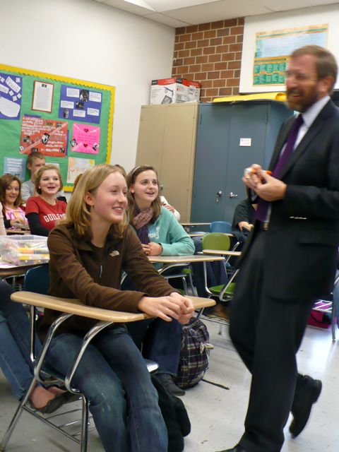 Perhaps most poignant of all was the last class of the day, during which I read my story “Amputee” about a young female soldier who returns from Iraq after traumatic amputation of her arm from an IED. Moments before I read the story out loud, a student walked into class tardy and announced was late because he’d just been promoted in Junior ROTC to Private First Class. After I finished the story, another boy said, “Wait…are we at war in two countries? I thought we were only fighting in Afghanistan. We’re in Iraq?”