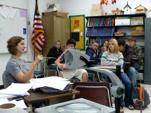 Today I switched gears to lead four back-to-back 90-minute sessions of high school English classes in Yancey County. I’d been looking forward to this experience for a number of reasons, most especially because a few of the students I saw were in middle school at Arthur Morgan School when my parents and I taught there a few years back. Those “kids” are now near adulthood, driving, and full of great promise. It was fun to see them in their high school worlds and to get to meet their current teachers.