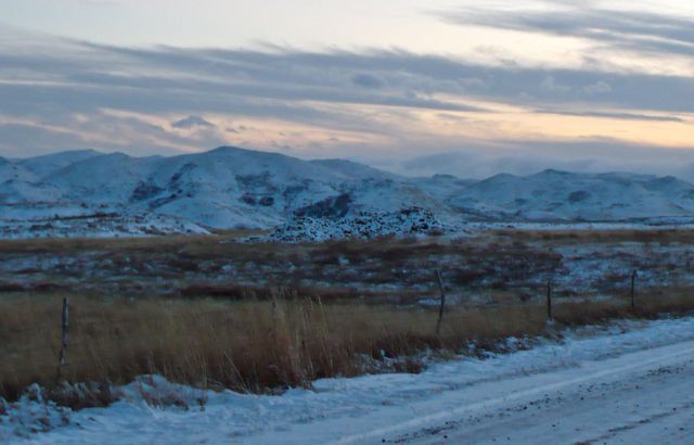 The light at this hour of the day is unmistakable. A gentle, electric blue settles over the foothills and the frozen grasses stand erect in the fast winds, brilliantly yellow in the day’s dying light. Laura Bell, in her memoir about the Big Horn Valley called Claiming Ground, calls this color on the mountains the “salmon wash”:
