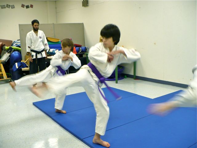 And more than anything, my jiu jitsu (joint locks and take downs) training has suffered due to life on the road because of the simple fact that you can’t really do a joint lock on yourself or grapple with your imaginary friends. The kids class is going great, though, training in pairs and laughing through the tough spots with Sensei Nate as their guide: