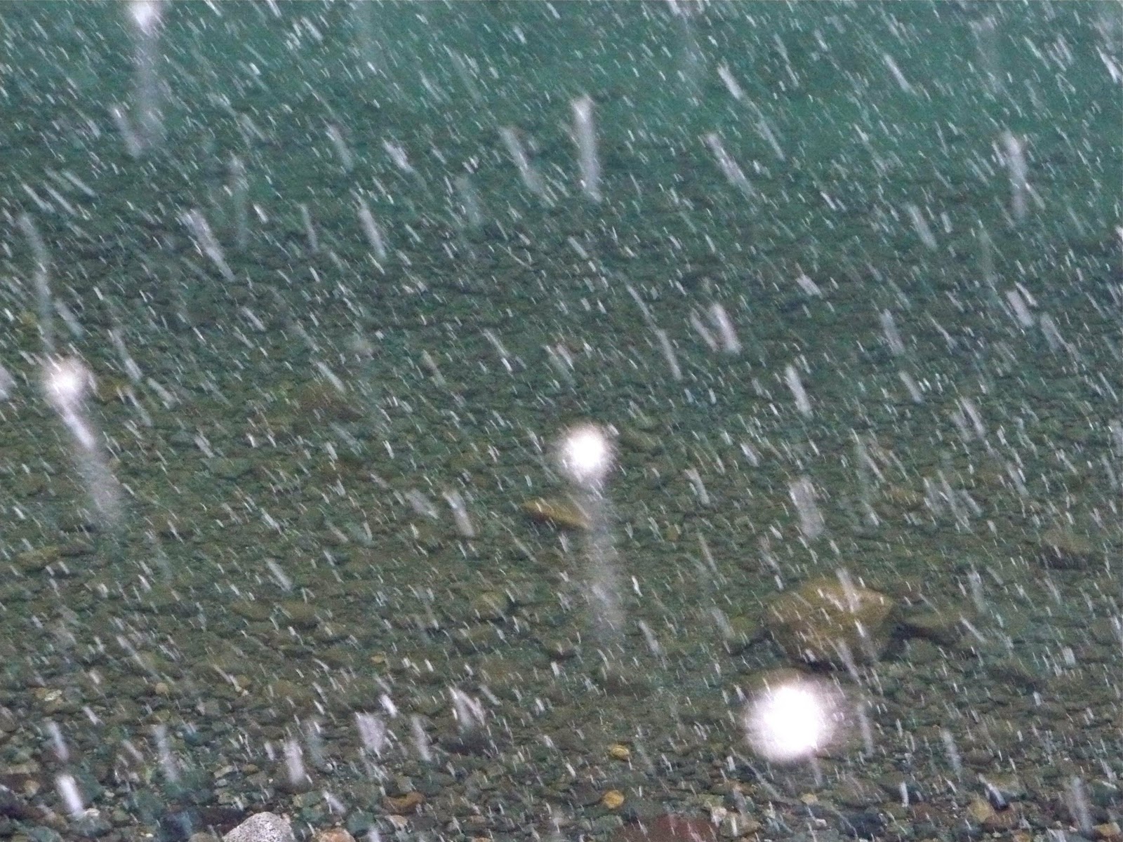 It’s so simple: the way snowflakes confetti into the water, one moment frozen and flying, the next moment swallowed by the blue-green lake. I could watch this magic trick for hours, each flake a fleeting thought, born and then dissipated, everything and nothing all at once. And fittingly impossible to capture clearly on camera: