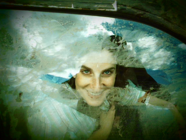 (Peeking through muddy car window)