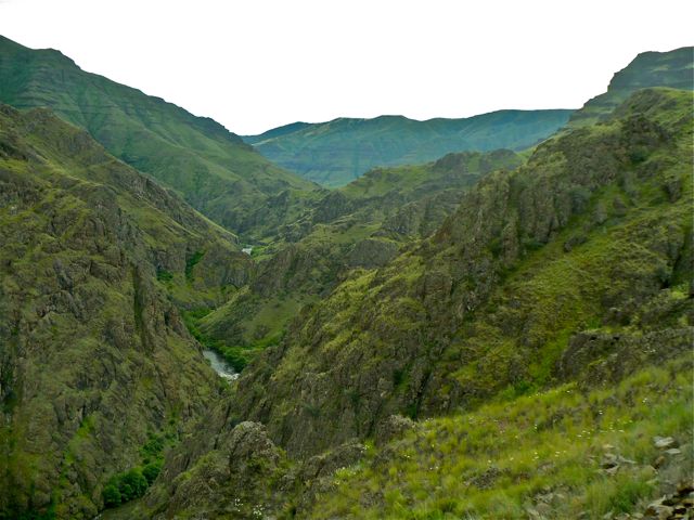 Like I said—we’d been amped about this ride for more than a week. It was only 2:30 on a still sunny Sunday afternoon, so we loaded into Eric’s van and headed for the Lower Imnaha. Readers will remember that I spent April in the Imnaha Canyon at the Writers’ Retreat but never made it to the lower section of the road because, well, most cars don’t. Eric’s Westfalia van is in about the same class as my Volvo, meaning it’s also ancient and keeps on keepin’ on but it has it’s limits. So we stocked up on water at the tavern, drove until the pavement ended on the Lower Imnaha, then ditched the van and hopped onto our bikes for a ride down into Hell’s Canyon.