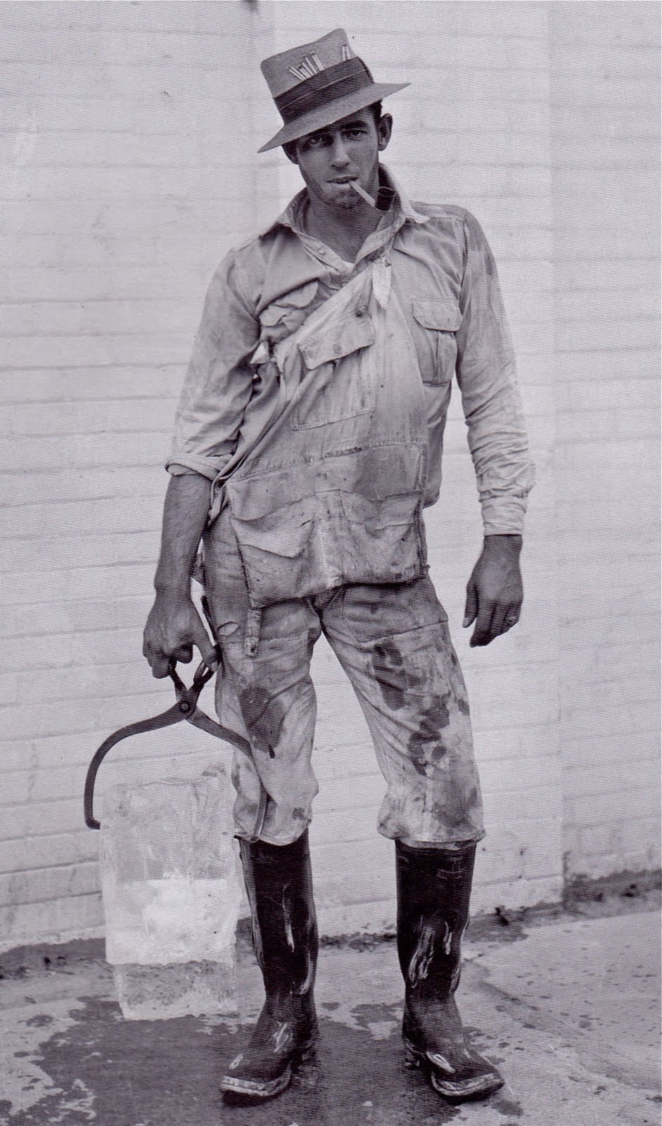 the Home Ice Company in 1928 [in Houston]. He is holding a 25-pound chip off a