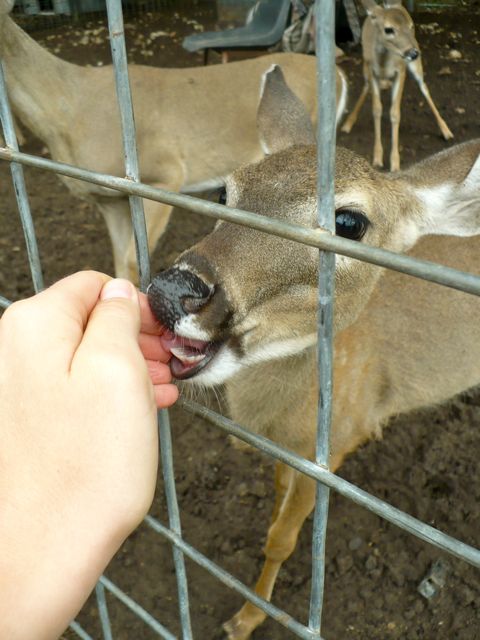 Oh, and there are rescue fawns, too, their noses feel like wet salamanders and their teeth nibble like a toddler’s. They’re so tiny you could mistake them for figurines. Compare the size of my thumbnail to this little one’s nose. Notice the crooked posture of the one in back. I wanted to stuff one into my pocket and take it back to the Lake House!