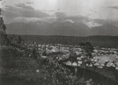 I spent some time flipping through primary source material this weekend, searching for first-hand impressions of early Anchorage. Back in the 19-teens, Anchorage was just a tent city of folks come to help start the railroad. Delaney Air Strip was still another decade off and statehood still more than 40 years away. I wonder about the likes of folks hunkered down in these tents at the foot of what is today Government Hill–families, adventurers, prospectors, fishermen…Was there a universal sense of community or did one have to fend for one’s self? How did things change over time?