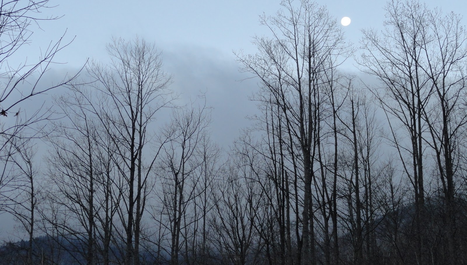 Wind roared down from the tops for three thousand feet and slammed into the Airstream head on. From the side, wind came up from Banjo Branch over the north side of Coon Ridge and shook the trailer on its blocks. Dad pulled out the post-hold digger and set a pole 3 feet down, then chained the 175-pound propane tanks to it…just in case. Weather station data from the top of Mount Mitchell–that very ridge line I orient by every day–indicated that, with wind chill, the temperature up top plummeted to 2.7 degrees at one point. Yipes!